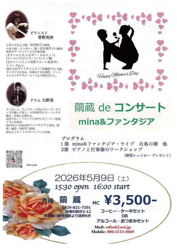 5/9(土)繭蔵deコンサート mina&ファンタジア