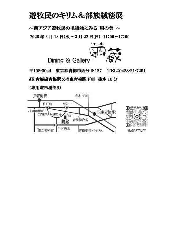 3/18(水)~22(日)遊牧民のキリム&部族絨毯展